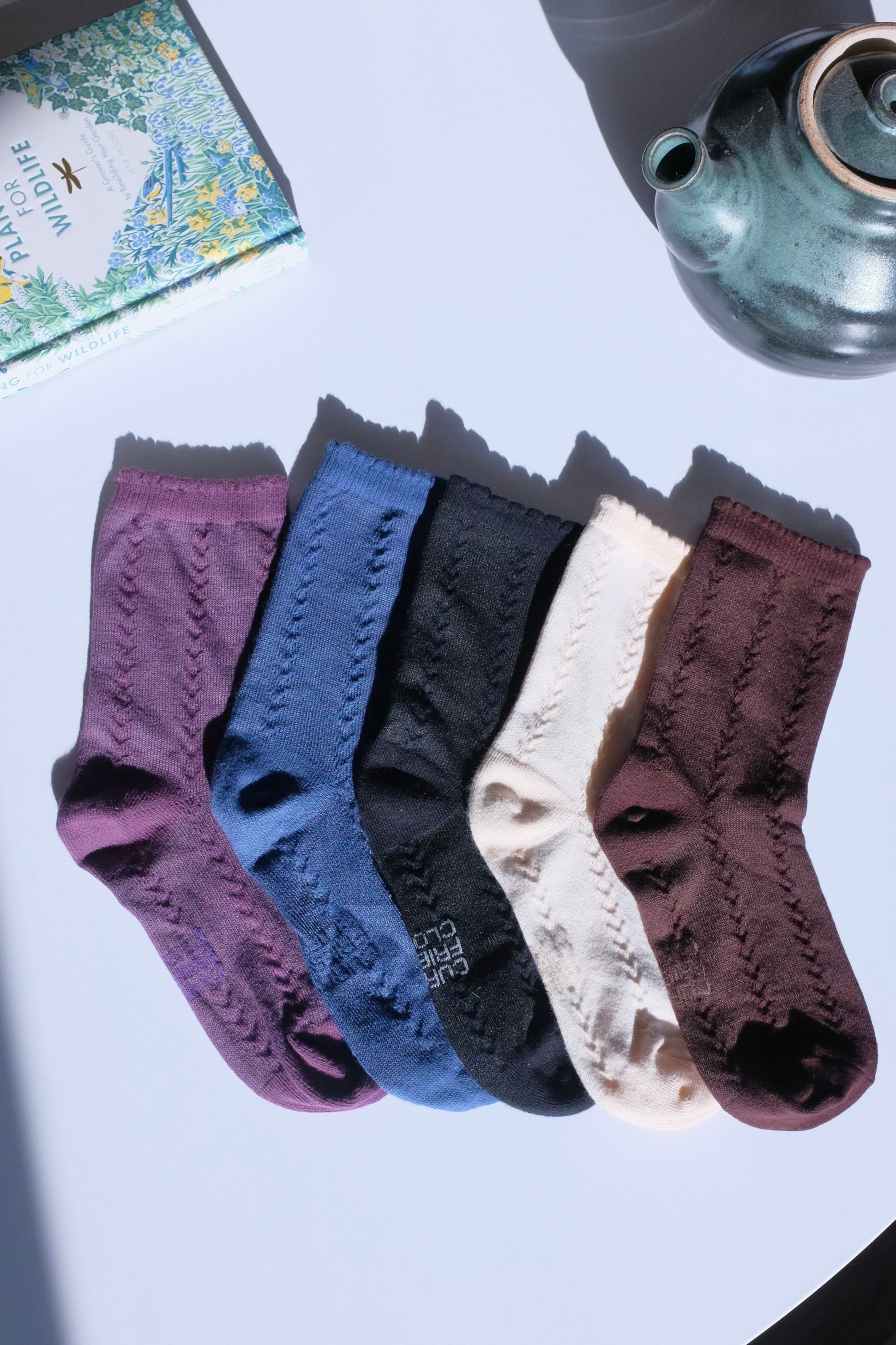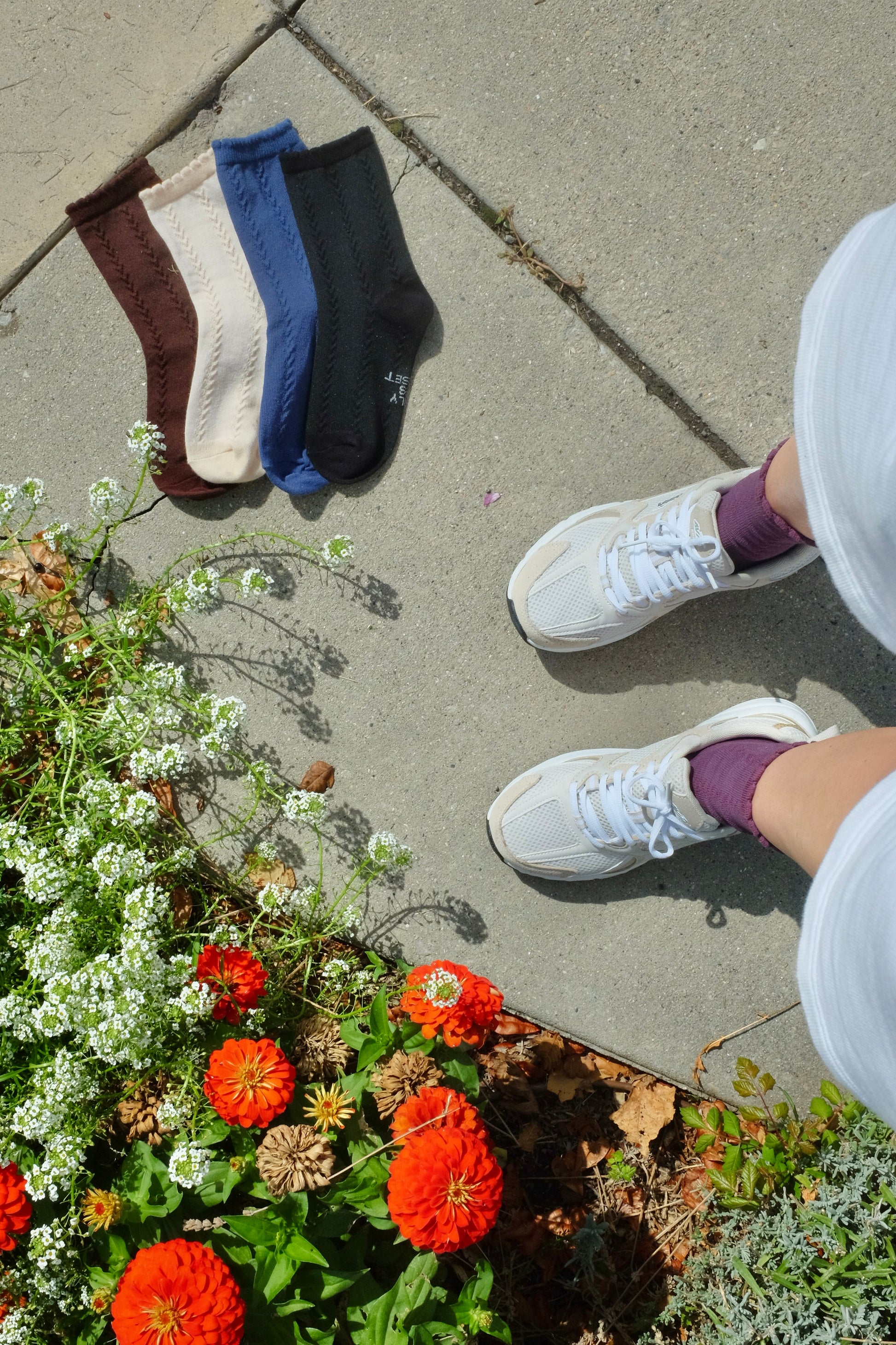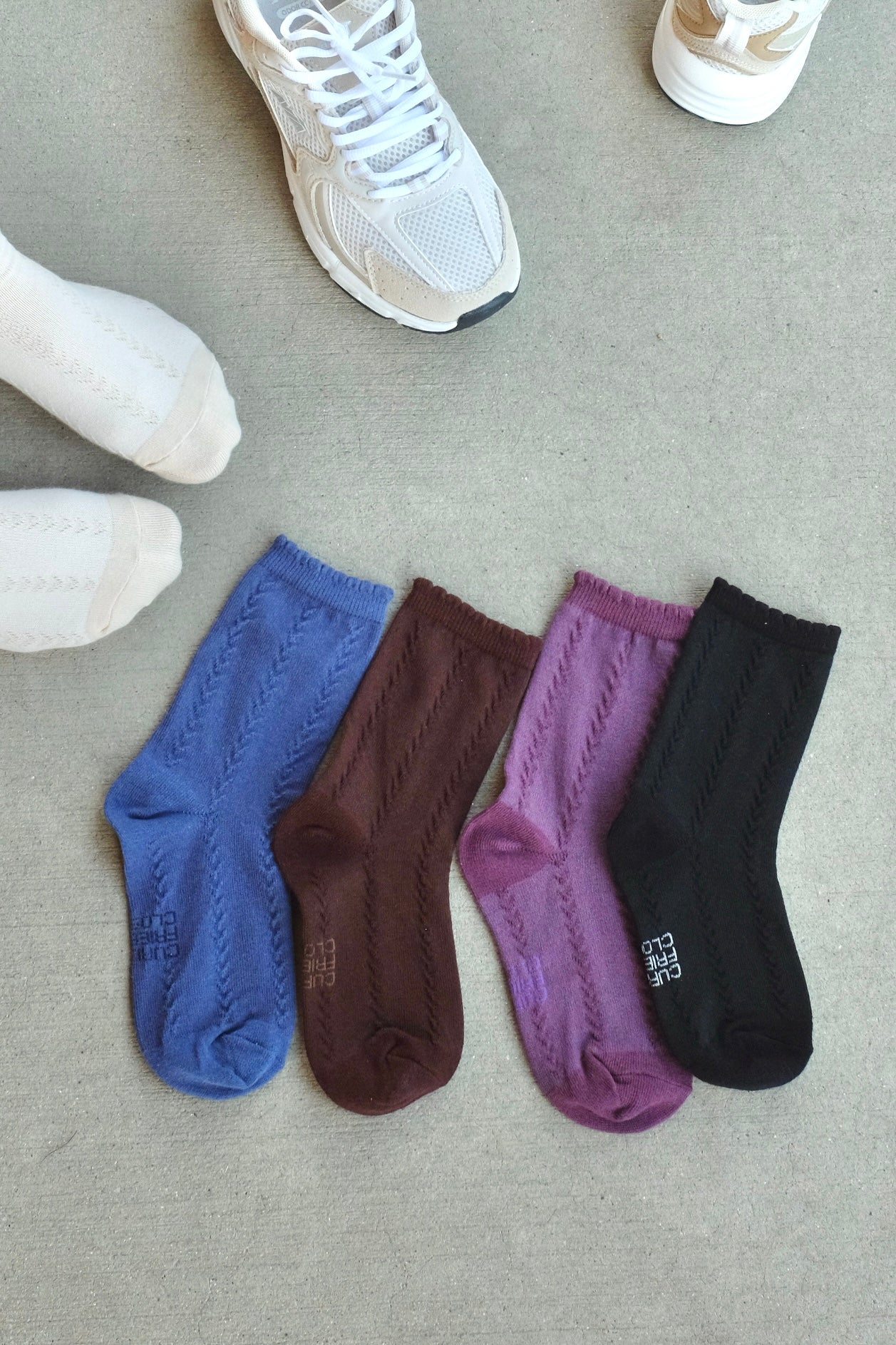Reverse knit vertical pattern that adds some subtle flare to your sock game!! With a nice little bubble ruffle to top it off. Classic brown, black and beige, with some pop of colors with blue and purple!!! I AM LOVING THESE SO MUCH 💜🖤💙🤍🤎